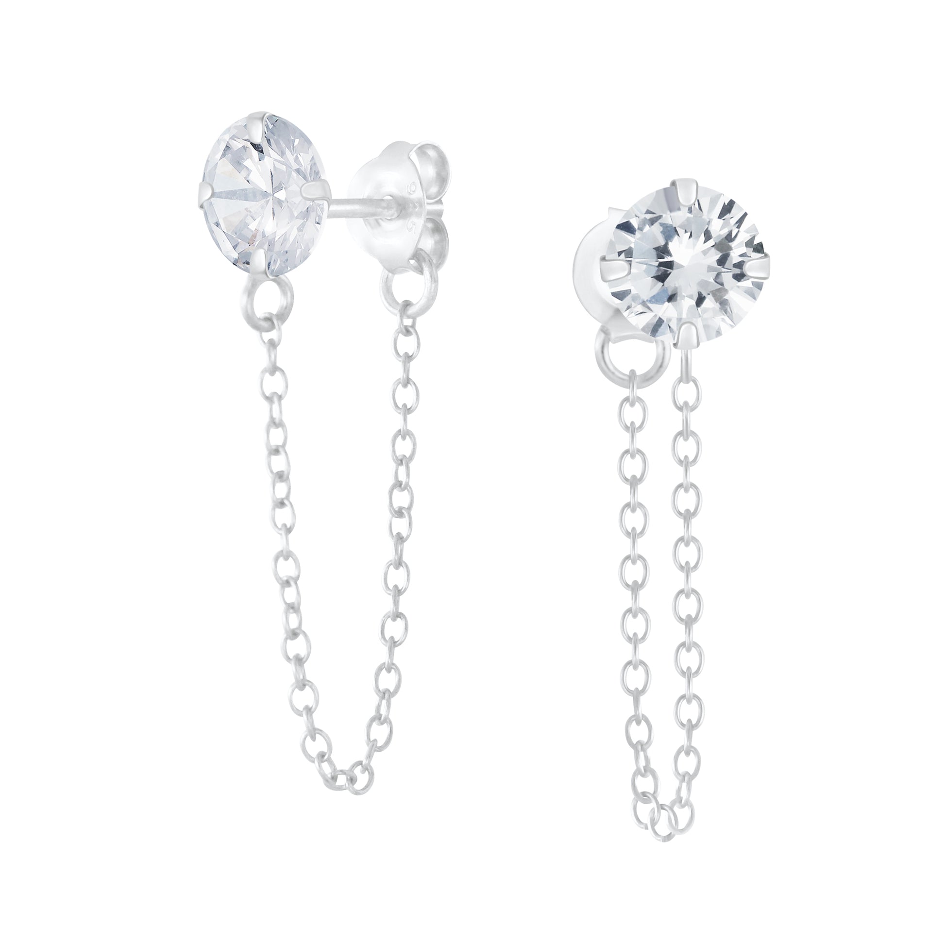 The earrings feature a delicate silver chain and are coated with an eco-friendly anti-tarnish finish, ensuring they maintain their brilliant shine over time. Perfect for both everyday wear and special occasions, these earrings are a must-have accessory for anyone who appreciates beauty and durability.